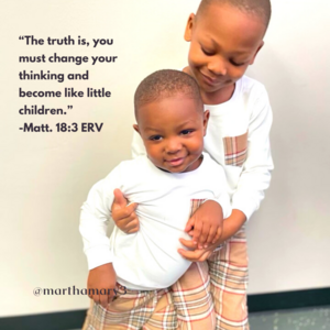“Who then is the greatest in the Kingdom of Heaven? Jesus called a little child to him, and placed the child among them. Unless you change and become like little children, you will never enter the kingdom of heaven.”