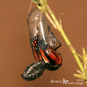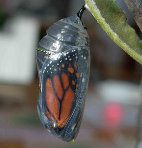 A caterpillar instinctively (by God’s perfect design) creates for itself a pupa or chrysalis, which undergoes an incredible, indescribable transformation! The process of forming the chrysalis itself takes only a few hours to complete. The average time it remains in the chrysalis can be 7 to 10 days. (Some butterflies, especially those in harsh environments like deserts, can stay in their chrysalis for up to three years). Monarch butterflies typically stay in their chrysalis for 8 to 15 days.