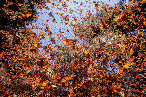 Monarch butterflies migrate to Mexico where there is a gathering of millions upon millions of other Monarch butterflies. They huddle together surviving on stored energy.