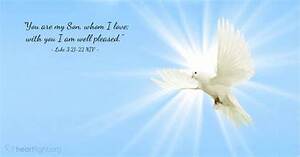 In “As soon as Jesus was baptized, he went up out of the water. At that moment heaven was opened, and he saw the Spirit of God descending like a dove and alighting on him. And a voice from heaven said, This is my Son, whom I love; with him I am well pleased. ”