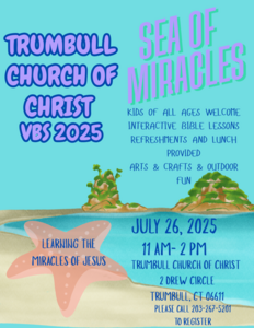 VBS is coming up quickly! The next VBS meeting will be on June 29th, immediately following service. Note: The meeting which was originally scheduled for this Sunday 6/15 is cancelled due to Father’s Day. The only position that needs to be filled is for one Bible class teacher, however there’s always room for more. If you are interested in volunteering, please see Derin or Kristen Wilson. The food sign-up list will be on the back door. Flyers are on the table in the auditorium. Please invite family and friends for this afternoon of fun and learning about the bible.