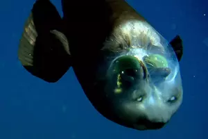 Barreleyes are thought to be solitary creatures that inhabit the ocean’s twilight to midnight zones, usually between 2,000 to 2,600 feet (600 and 800 meters) in the northeastern Pacific ocean.