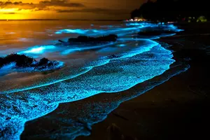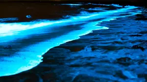 The organisms emit a blue light, creating a glowing effect. How GREAT is our GOD!