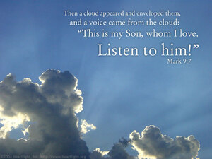 “A bright cloud enveloped them, and a voice from the cloud said,
