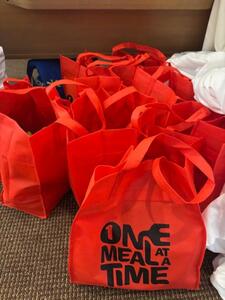 Thanks to Brother Wiley Mullins for his wonderful idea of creating BRIGHT RED BAGSOne Meal at a Time project which will help us to remember to bring in some non-perishable foods in each week for Spooner House!   Before passing out the red bags last Sunday, Wiley  filled them all with food for all of our families here in Trumbull.  Wow!   Thank you Wiley for your kind and generous heart.  The bags will be a reminder to us all to remember those in need.