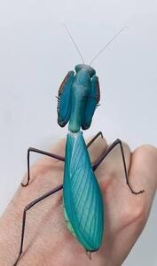 The praying mantis is an insect whose hands are clasped together as if it is praying. Their bodies mimic leaves, twigs or flowers blending in wherever they go.